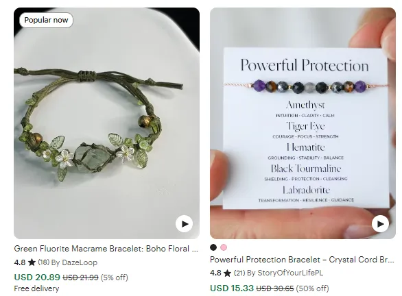 Etsy上玄学手串的市场还是相当不错的,不同款式的手串销量基本上都破千了,定价也都是比较高的。