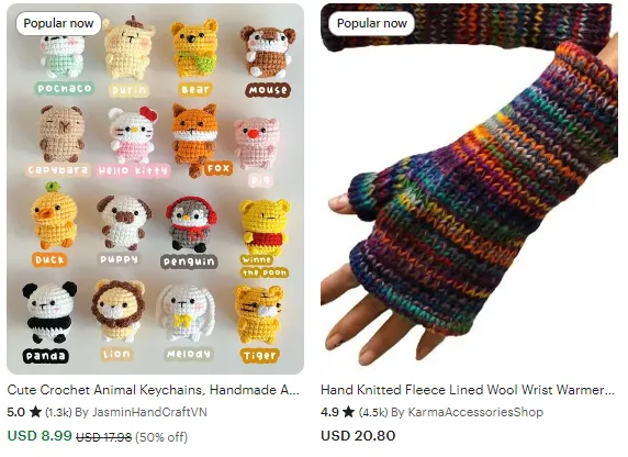 在一些手工手套、包包上钩织简单的图案,非常符合Etsy对手工和原创设计的要求。