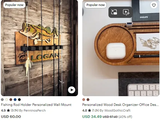 与独立站和亚马逊不同,Etsy平台上的卖家不需要囤货,可以做POD和虚拟产品,一件代发的模式可以降低囤货风险,减少前期投入的成本。