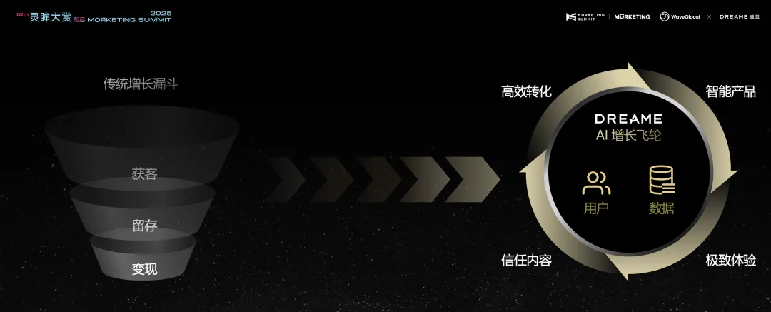 这就意味着,这个转化系统不是一成不变的,而是一个越用越聪明、越转越高效的学习型系统。所以AI赋能的潜力,不再是传统的广告投放,本质是构建精准灌溉的智能闭环,它极大降低了转化阻力,提升了增长效率。并最终为整个增长飞轮提供持续加速的新动力。