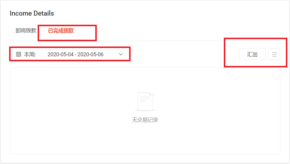 请注意:汇出表格时,必须选择对应时间段,且要包含打款日期。比如:一笔订单完成时间为5月18日,则会在6月15日左右拨款,如需查询该订单的拨款明细,汇出表格时,选择的日期必须包含6月15日。