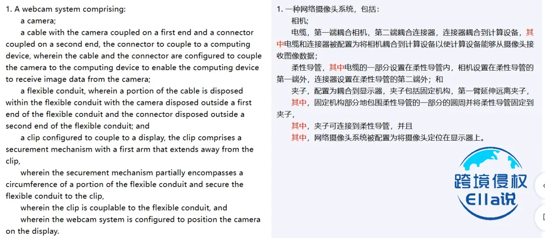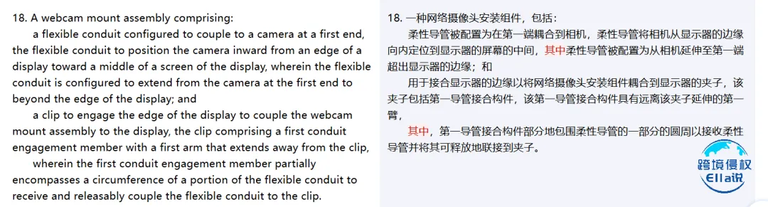 改变支撑部件“Flexible Conduit”(柔性导管)的特征 彻底更改夹子(Clip) 的固定方式与结构; 检索更早的现有技术,若能证明专利技术方案在优先权日(2021年1月7日)前已被公开,可尝试以 “缺乏新颖性 / 创造性” 为由提出专利无效抗辩。