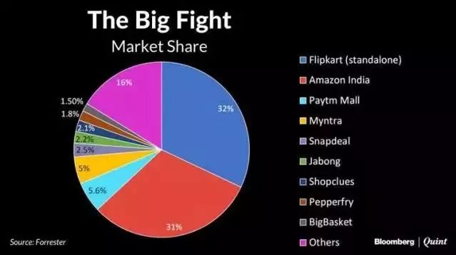 印度主流跨境电商平台包括Flipkart、亚马逊、Paytm Mall、Snapdeal、Club Factory等,根据Forrester的数据,Flipkart(包括旗下Myntra和Jabong)以39.5%的市场份额位居第一,其后分别是亚马逊 (31%) 、Paytm Mall (5.6%) 、Snapdeal (2.5%) 、Shopclues (2.1%)。总部位于杭州的Club Factory声称自身是印度非标品电商市场份额第一名,但总体销售份额根据Forrester的数据不到1.5%。
