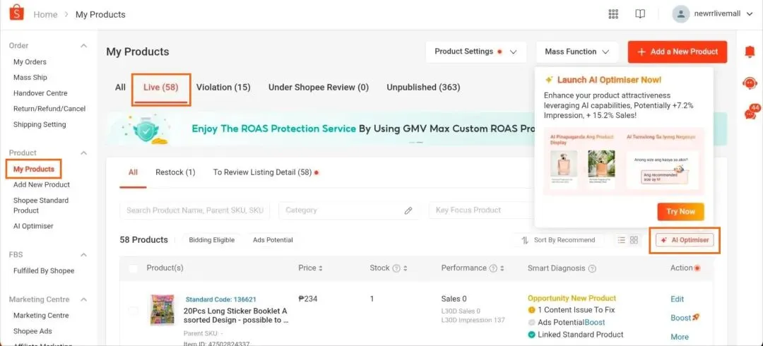 您可以通过左侧工具栏访问 AI 优化器,或选择我的产品 > 在线 > AI 优化器。