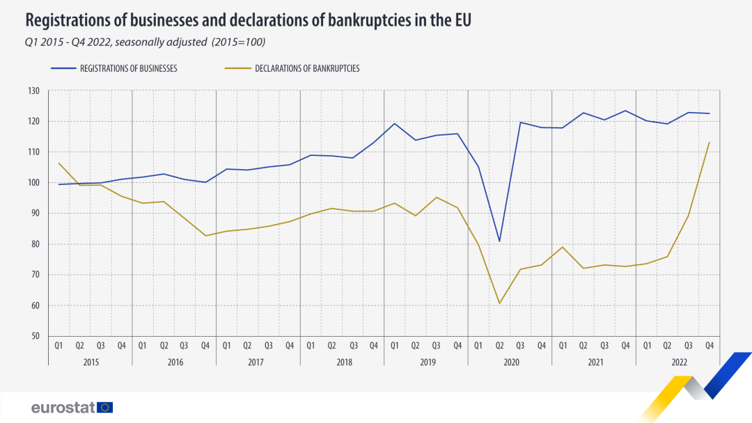 新订单的减少意味着企业依靠现有的积压业务来维持业务活动水平,订单积压量连续第五个月下降,降速为两年来最快。长期来看,受消费低迷的影响,欧元区经济活动前景仍然不容乐观。建议相关出口企业尽快进行债权登记,避免错过登记截止时间(见上文),争取减损可能;已投保出口信用保险的企业应按照保单约定及时报损,并提交相关报损材料。对于滞港或在途货物,如出口企业能够控制货权,建议积极采取措施进行货物减损处理;如原买方仍有收货意愿,务必事先获得破产管理人书面同意;已投保出口信用保险的企业在处置货物前,需事先向中国信保提交货物处理方案申请。建议出口企业密切关注HPB集团旗下其他品牌公司的经营情况,控制好交易规模,充分运用出口信用保险提前评估风险。出口企业可借助中国信保买方资信调查服务,持续跟踪合作买方资信状况,做到“知己知彼”,对曾发生股权重组事件的买方应重点关注其重组背景。尽管2022年四季度欧盟企业宣告破产数据大幅增加,但在新企业注册方面,2022年第四季度与上一季度相比仅略下降了0.2%,在欧盟企业新一轮破产潮中也暗藏新的机遇。而且在2022年的所有四个季度中,企业注册数量都高于2015-2019年新冠疫情流行前的时期。出口企业应该在运营过程中做好风险管控的工作,同时抓住市场增长机遇,寻找新买方开发新订单,以保持自身在欧盟市场的竞争力和稳定经营。当前国际贸易形势仍然复杂严峻,出口企业在拓市场增订单的同时,仍需密切关注宏观经济变化。