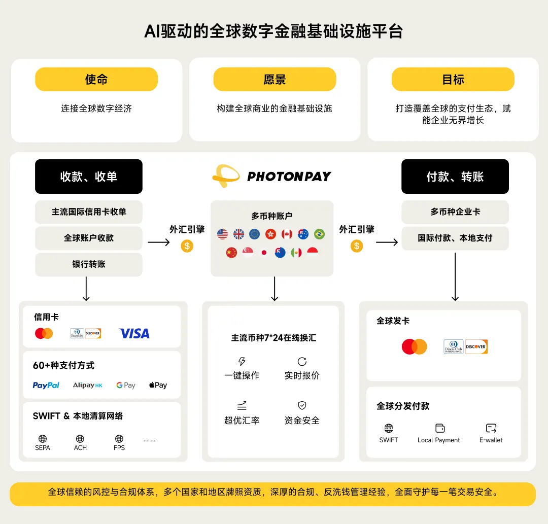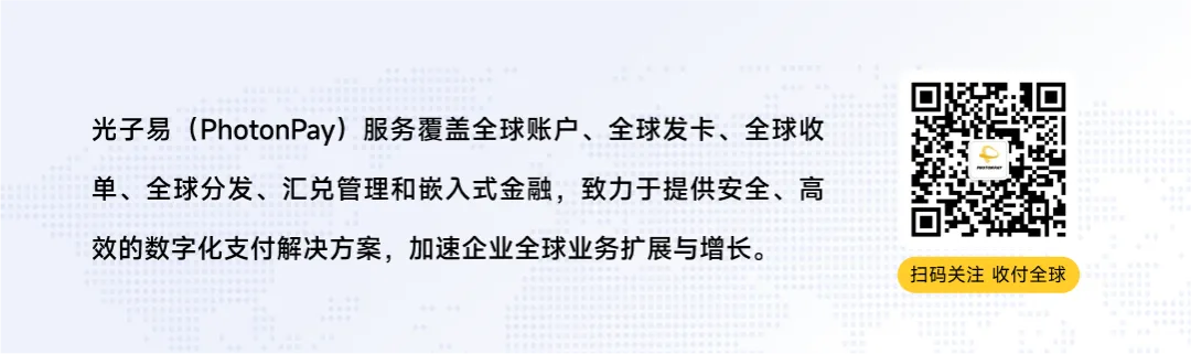 自2015年成立以来,PhotonPay光子易始终深耕全球数字金融基础设施建设,业务覆盖全球230+国家与地区,服务超20万家企业。依托强大的合规体系、本地化支付网络与AI驱动的技术架构,PhotonPay光子易提供的一站式解决方案能够全面支持企业的全球收单、全球收付款、智能汇兑管理等核心需求,助力企业加速全球业务扩展与增长。