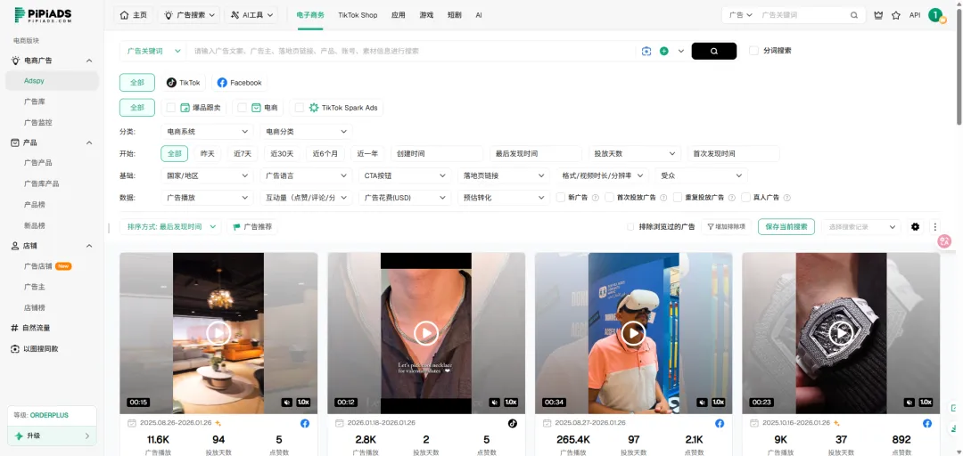 它负责“看”。帮你把全网ROI最高的素材挖出来,告诉你现在的市场风向。