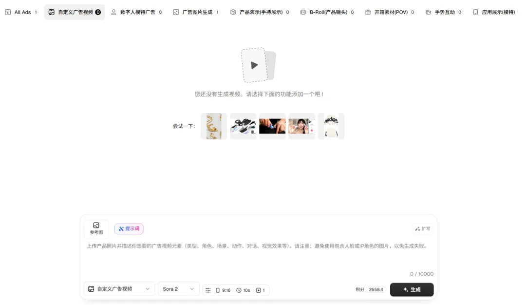 它内置了海量的广告案例库,并且每一个案例都自带“提示词解决方案”。