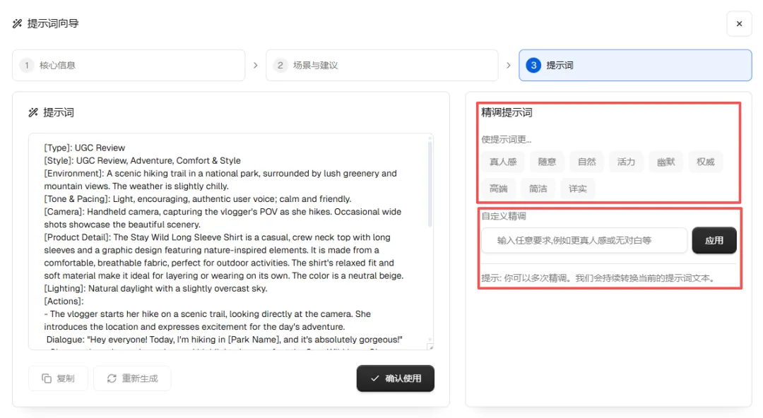很多人担心用 Nextify 会生成一样的视频。其实恰恰相反,Nextify 的 Prompt Wizard(提示词向导) 解决了这个问题。