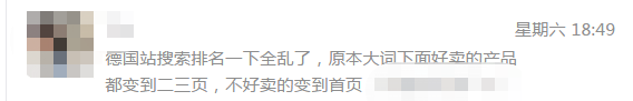 近日有一位卖家爆料,上周六亚马逊德国站的排名又乱套了,这位卖家表示:
