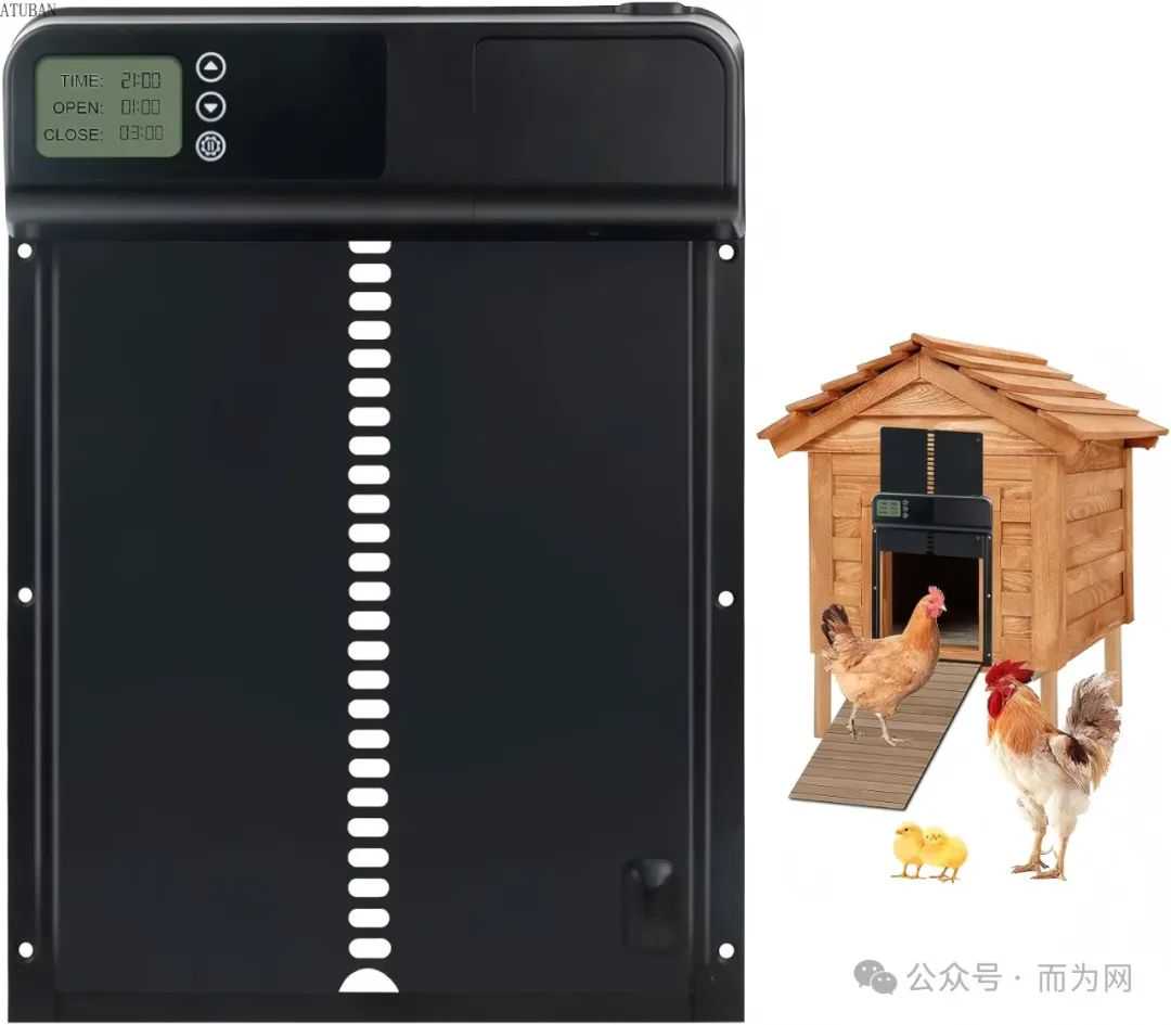 鸡舍门采用铝合金与ABS材质,具有防腐防锈特性,延长了使用寿命。其开门尺寸适合鸡、鸭、鹅等多种家禽轻松进出。内置定时器功能,用户可根据需求设置固定时间自动开关门,无需依赖光传感器,彻底告别早起开门的烦恼。同时,门体配备安全传感器,若在关闭过程中检测到家禽阻挡,门会自动停止并反转,有效防止家禽受伤。