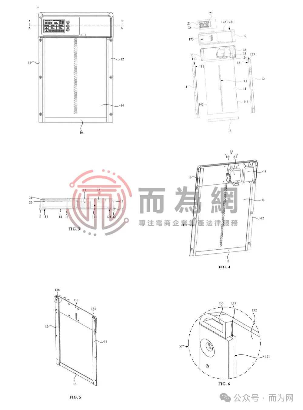 本案涉及一项发明专利,专利包括第一门柱、第二门柱、顶板、门板和驱动机构。第一个门柱定义第一个凹槽 第二个门柱定义第二个凹槽。顶板与第一门柱、第二门柱的顶端连接。门板设置第一门柱和第二门柱之间,可沿第一凹槽和第二凹槽移动,以关闭或露出入口。即使产品不是一模一样,设计理念相同也会有侵权风险!