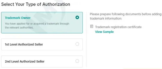 1)如果是商标持有人:Trademarkowner-商标主体和店铺主体一致选择1;