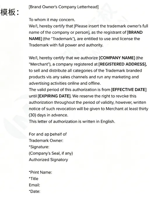 TikTok Shop注册人拥有商标注册人的授权书