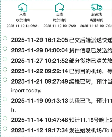 **通货代公司发出的欧洲空派货物,自2025年11月中旬清关放行后,物流信息便再未更新。