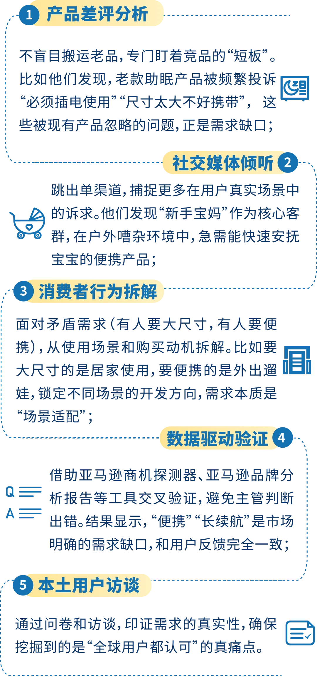 融一智能寻找助眠新品方向时,正是靠“真实需求五步法”挖透了未被满足的痛点,具体拆解如下:
