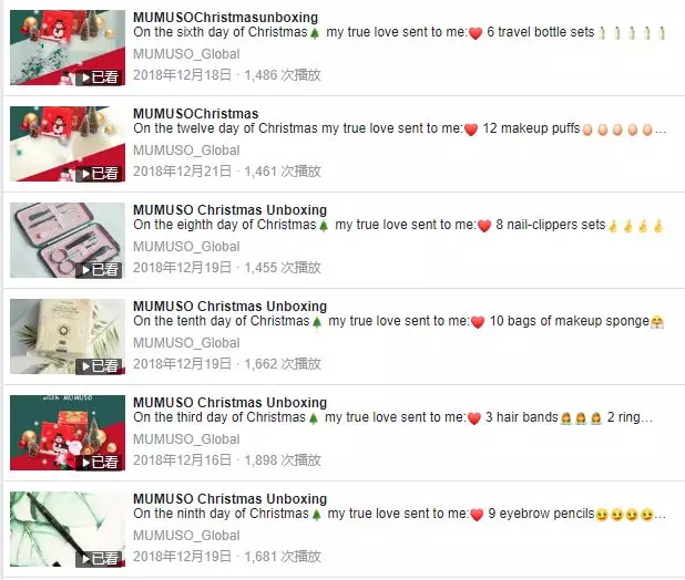 以12天为时间线,小帆团队把MUMUSO当月主推产品和“圣诞节的12天”歌曲意境完美融合,展开为期12天的圣诞开箱游戏~ 用每天的精美小物和精致画面吸引新旧粉丝对主页的注意力,把Facebook主页“炒热”!