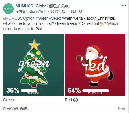 在小帆团队使主页热度成功升高时,小帆便趁势开展了一场投票互动活动,让粉丝们可以亲自参与定制自己专属的MUMUSO圣诞礼物,感受MUMUSO的独特圣诞魔力!同时 MUMUSO也得以进一步了解粉丝的喜好和期望~