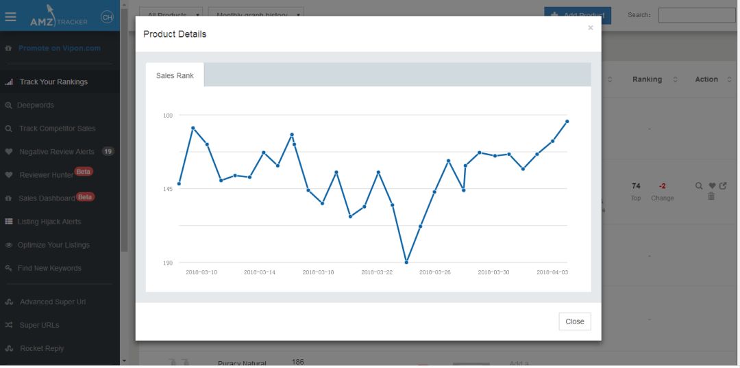 AMZ Tracker支持排名追踪,不仅可以及时追踪产品的销量排名、关键词排名及销量走势,更新增了竞品的关键词排名,可以追踪自身与竞品在同一关键词下的排名、销量走势。