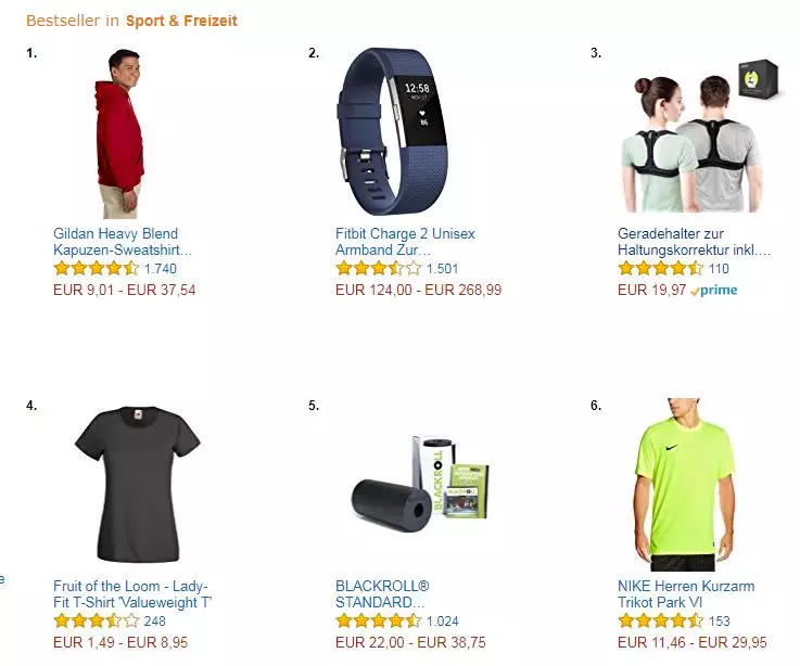 DE站点的Best seller榜单居首的是一款卫衣,另外在Best seller榜单的前20名有多达5款男士运动服装,可以看出德国的男性更热衷运动。