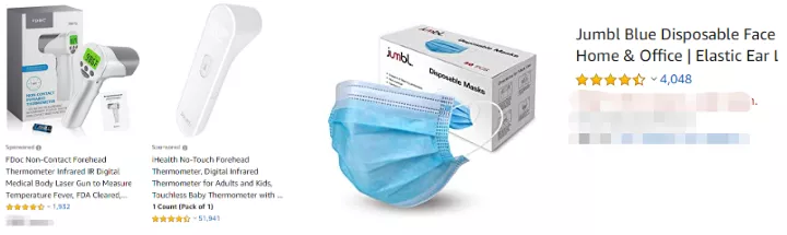 03 特别的产品 除此之外,和往年不同的是,今年多出了一些从未见过的产品:额温枪和一次性口罩。
