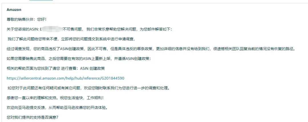 前两日,一位亚马逊卖家求助称其多条链接变狗,但并没有收到平台的邮件或者绩效通知,也没有申诉入口,更查不到链接被删除的具体原因,只知道是“违反ASIN创建政策”,希望有相同遭遇的卖家能一起商量对策。