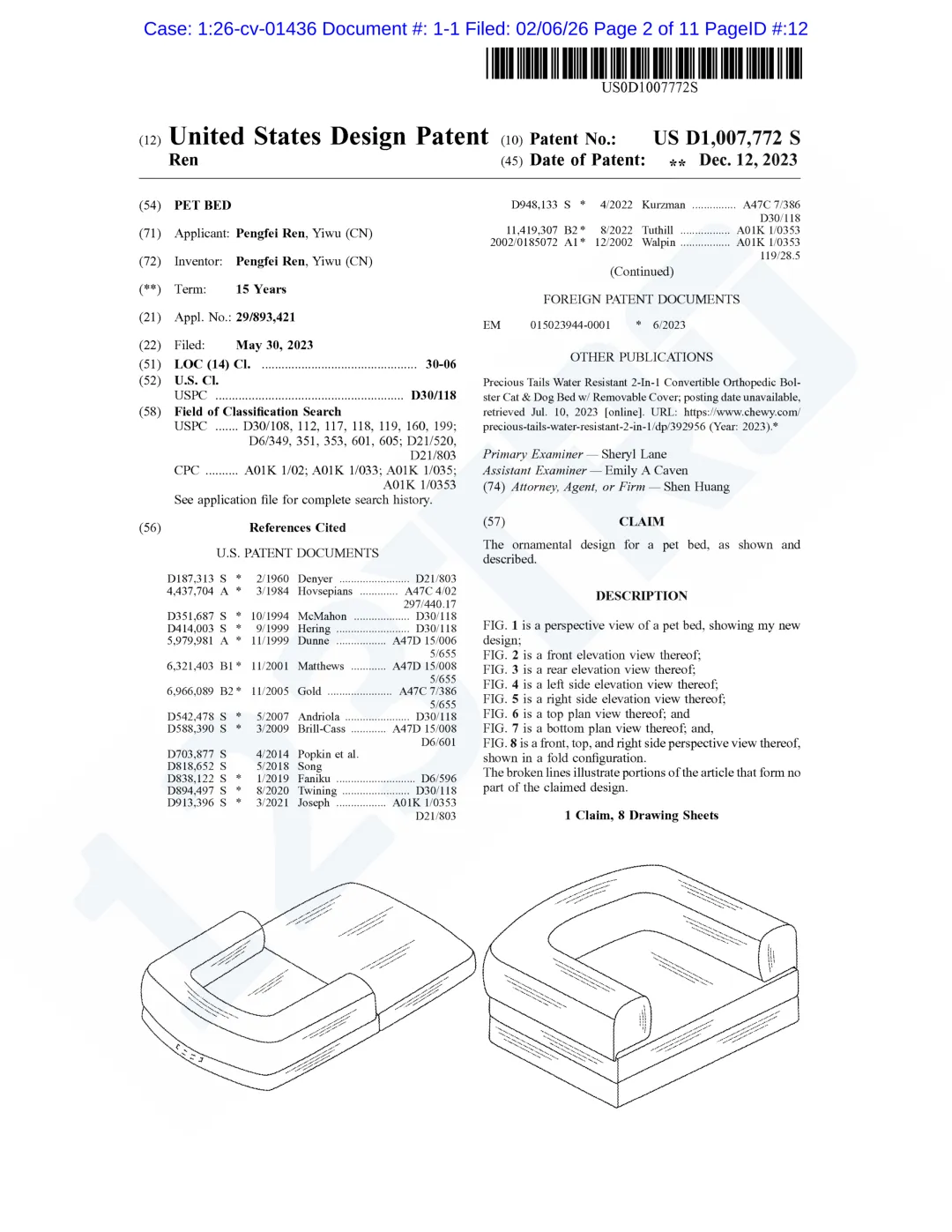 涉案专利USD1007772属于外观专利,于2023年12月12日下证