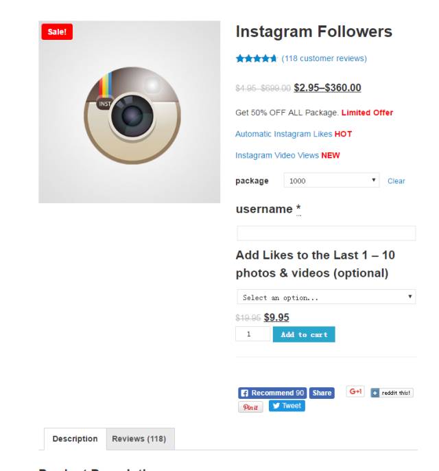 淘宝上给instagram加粉丝的基本都是2元100个,而我看了一下国外的,大多都在2.95美金左右,这里面的价差大家可以算一下。