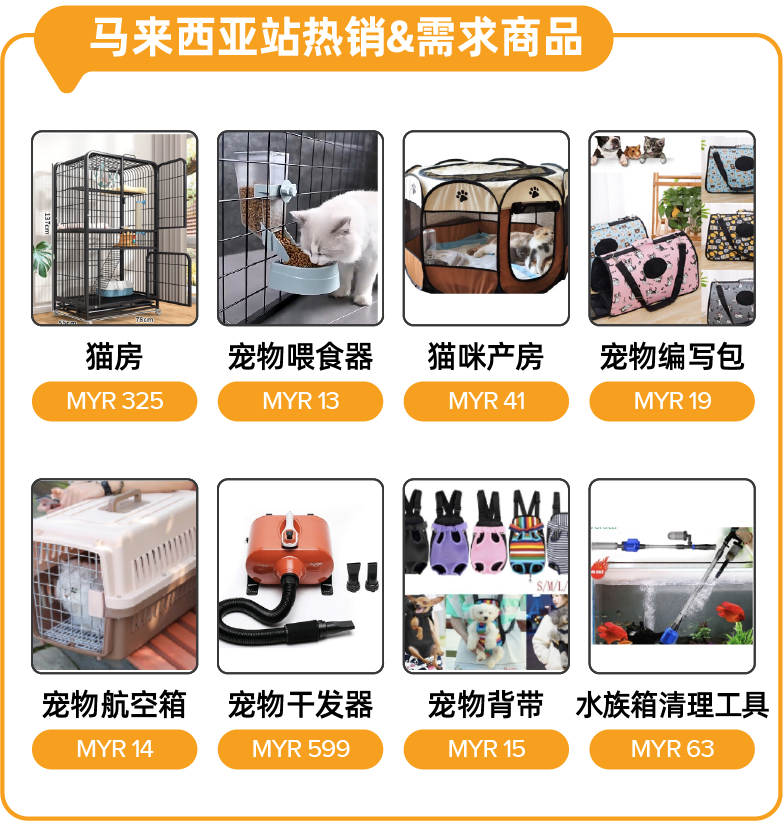 撸猫在近几年成为社会风潮,在城市化的工作环境中,人们更需要能有个宠物如同家人般陪伴自己,疫情导致的居家时间延长也正催化此现象。在马来西亚,受国内法律法规以及宗教的影响,只允许在特定的区域遛狗,人们更喜爱便于在家中饲养的小猫,因此猫舍、猫包等产品在马来西亚更受欢迎。同时,因为宠物猫的特殊性,宠物投食器和猫咪产房等配件也出现在热销榜单中。