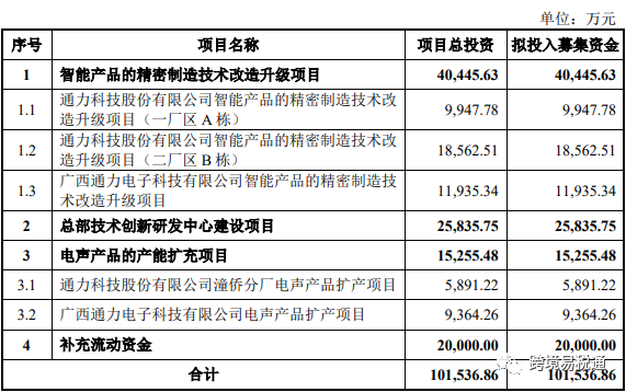 此次IPO拟募集10.15亿元,用于智能产品的精密制造技术改造升级项目、总部技术创新研发中心建设项目、电声产品的产能扩充项目和补充流动资金。