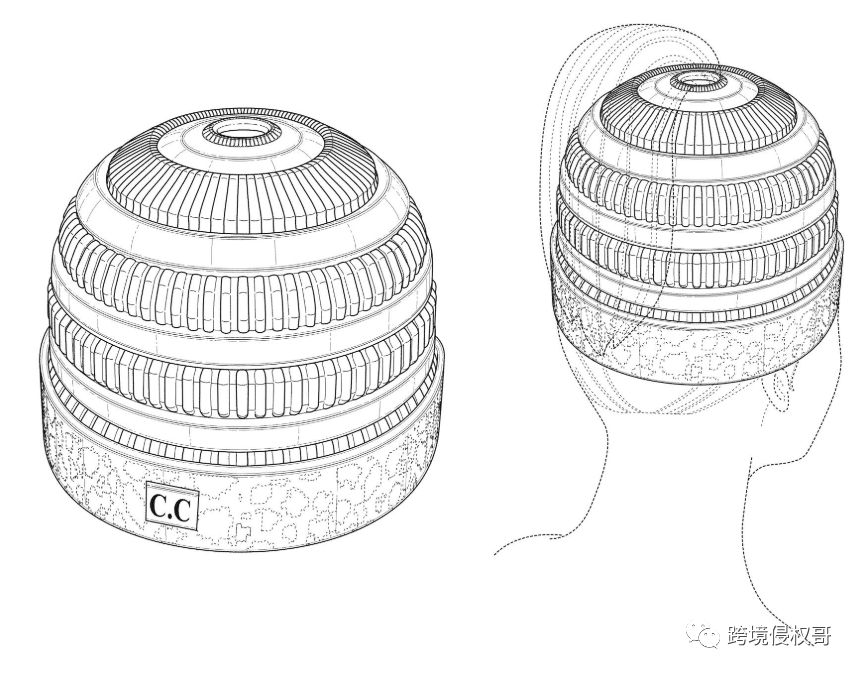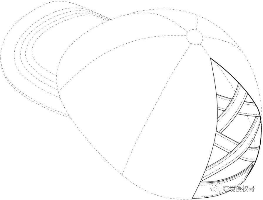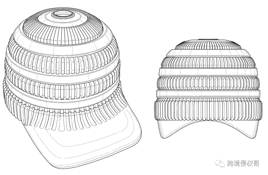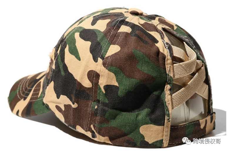 这款帽子的侵权点在于帽子背部的开口X形设计,注册了外观:D913645