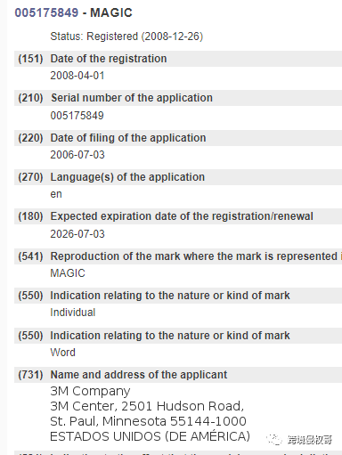 Magic魔术这个词很多人都会忽略掉它的侵权风险,今天提醒大家,Magic在16类办公用品注册了商标,注册人为3M公司。