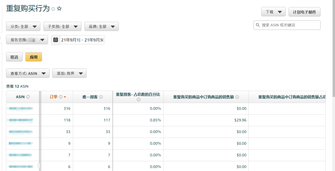 通过将订单数量与唯一买家数量进行对比,品牌所有者可以确定在指定的时间段内每位买家多次订购的商品或品牌,从而对其进行重点关注和维护。