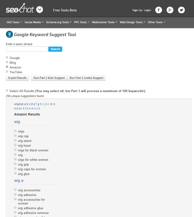 利用词根+a-z 的公式可以将有一定搜索量的关键词全部挖掘出来,然后将这些关键词记录到excel表中。比如我想把假发的一些关键词找出来,我会:wig a,wig b, wig c........
