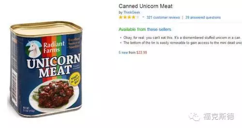 1.原汁原味独角兽肉罐头 (售价:34美金)
