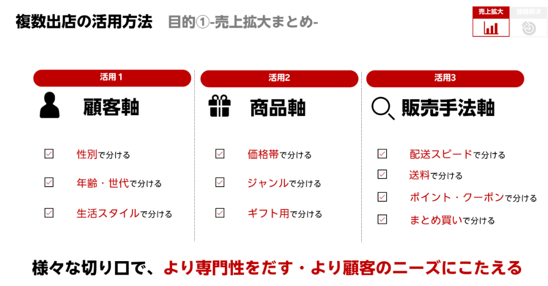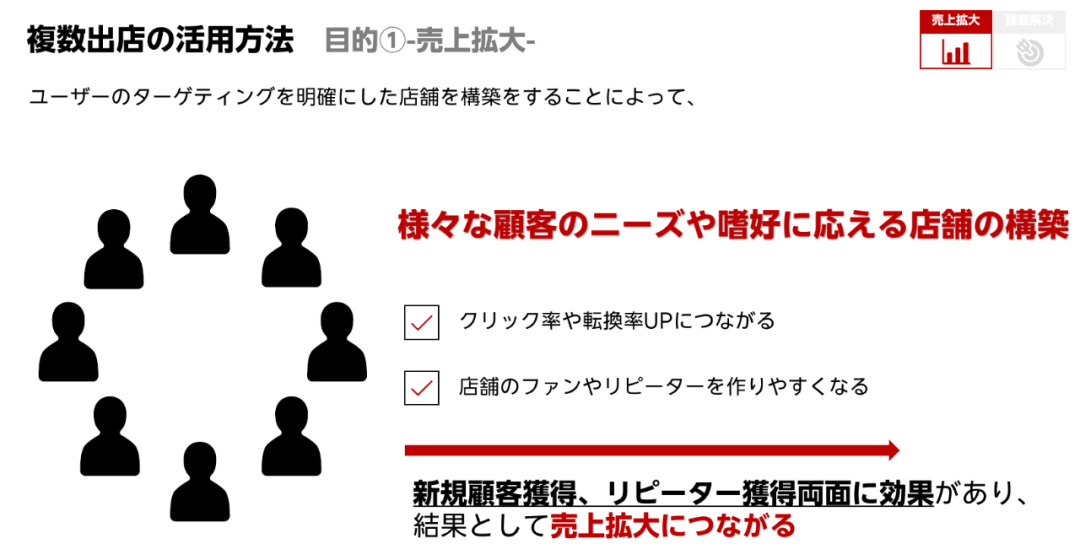 第二个店铺完全可以通过设置新的产品和价格范围,来接触以前无法接触到的客户群。此外,两家店铺之间将有更多交叉销售和追加销售的机会,从而提高平均顾客支出。经营多家商店还将提高品牌在乐天市场的知名度,让您更容易吸引更多潜在客户的眼球。通过制定利用每个商店特点的营销策略,还可以有效地吸引顾客并增加额外的销售订单。