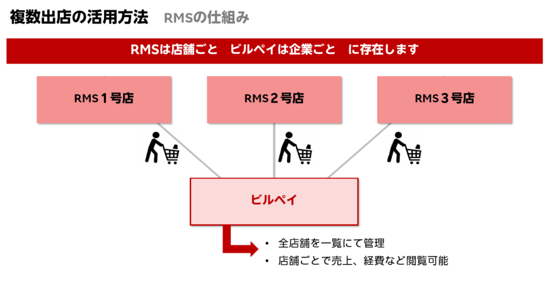 乐天平台鼓励多店铺的开设,所以在系统管理上也给出了一些支持。同一主体的多个店铺,可以通过BillPay来进行管理。