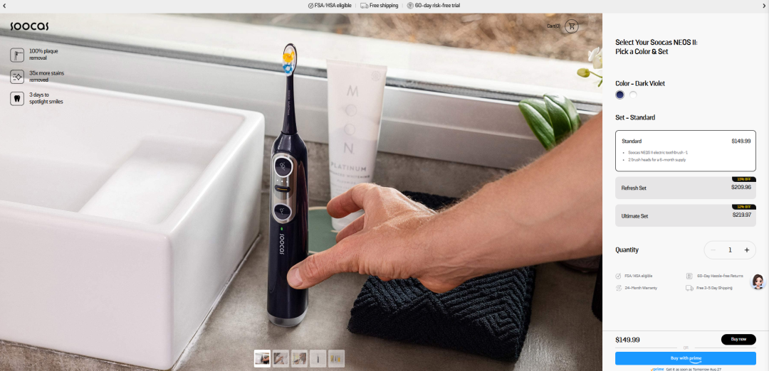 Soocas 证明,海外用户愿意为 “中国智造” 付高价 —— 前提是让他们相信 “这钱花得值”。医疗场景的权威背书、真实的用户评测、细节里的专业感,都是构建信任的砖瓦,而信任,才是打破 “低价内卷” 的关键。