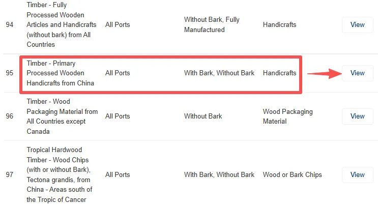点击 View 查看与该商品匹配的 CIR,提供了相关商品的具体进口要求,