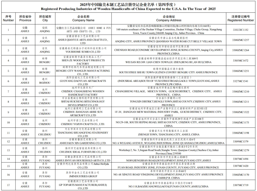 木质工艺品(Wooden Handicraft):指由天然木材、树枝或藤蔓等植物材料制成或衍生的商品类别。要符合该定义,这类工艺制品必须经过超出简单木材切割的进一步加工,且木材必须融入产品中,不能被轻易拆离从中取出。木材必须是该产品的结构性组成部分,若将其移除,将会损害产品的功能或结构完整性。木质工艺品包括(但不限于)以下含有木材的产品:木雕制品(Carvings)、竹竿及园艺支撑杆(Bamboo poles and garden stakes)、篮子(Baskets)、木盒(Boxes)、鸟屋(Bird houses)、园艺及庭院/露台家具(乡村风格)(Garden and lawn/patio furniture (rustic))、香(Incense)、干花香包(Potpourri)、人造树(Artificial trees)(通常为人造榕树)(Artificial Ficus trees)、熏香枝(Smudge sticks)、牙刷棒(Miswak sticks)、花园攀爬架塔(Trellis towers)、园艺围栏及边界装饰(Garden fencing and edging)以及其他由木材构成的制品。