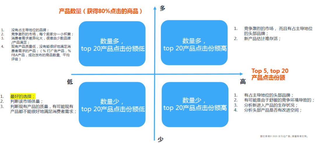 我们可以通过对比点击份额和产品数量,对市场格局进行分析: