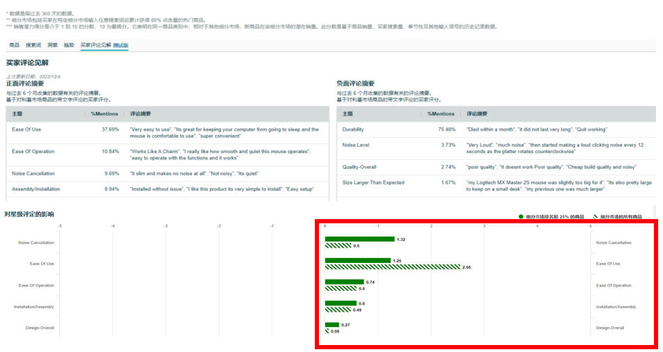 对过去6 个月买家的正面及负面评论统计分析,直接从产品出发倒推: