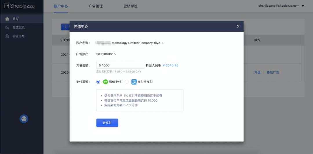 A2:在 店匠Shoplazza 一键开户后台提交有效的企业信息和联系人信息,随即会有 店匠Shoplazza 的专业人员对信息进行审核,一天后便收到审核通知,完成企业信息认证后即可实现一键开户。