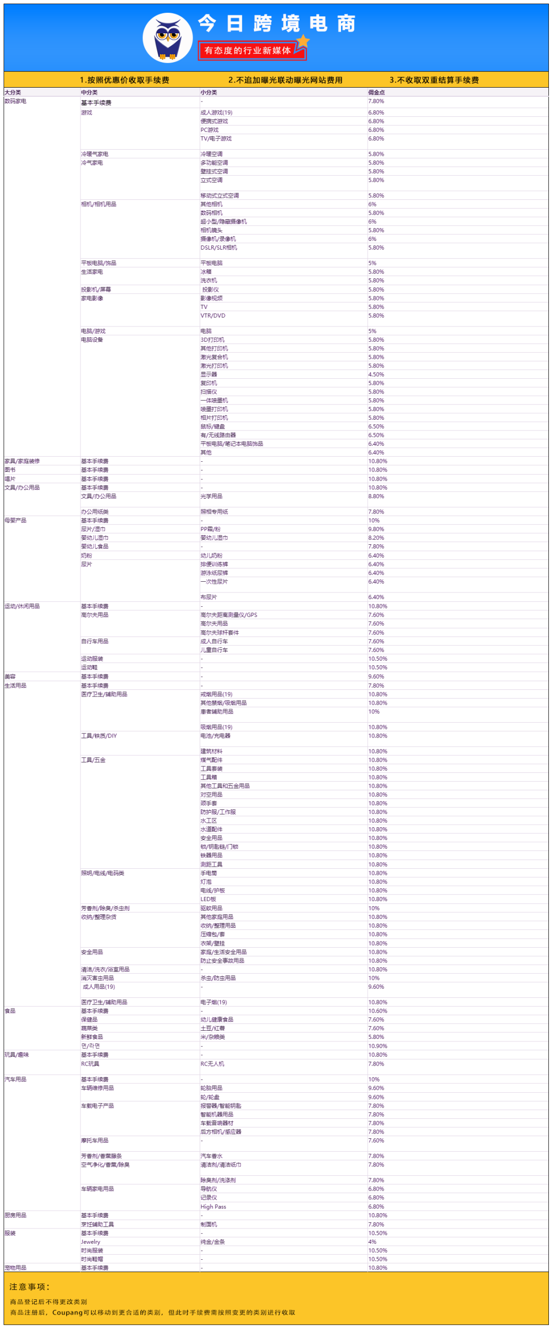Coupang作为新兴的蓝海黑马平台之一,它对卖家销售佣金也是有特殊条件和要求的,因此十二妹为老铁们整理了一份类目佣金,供大家参考与借鉴: