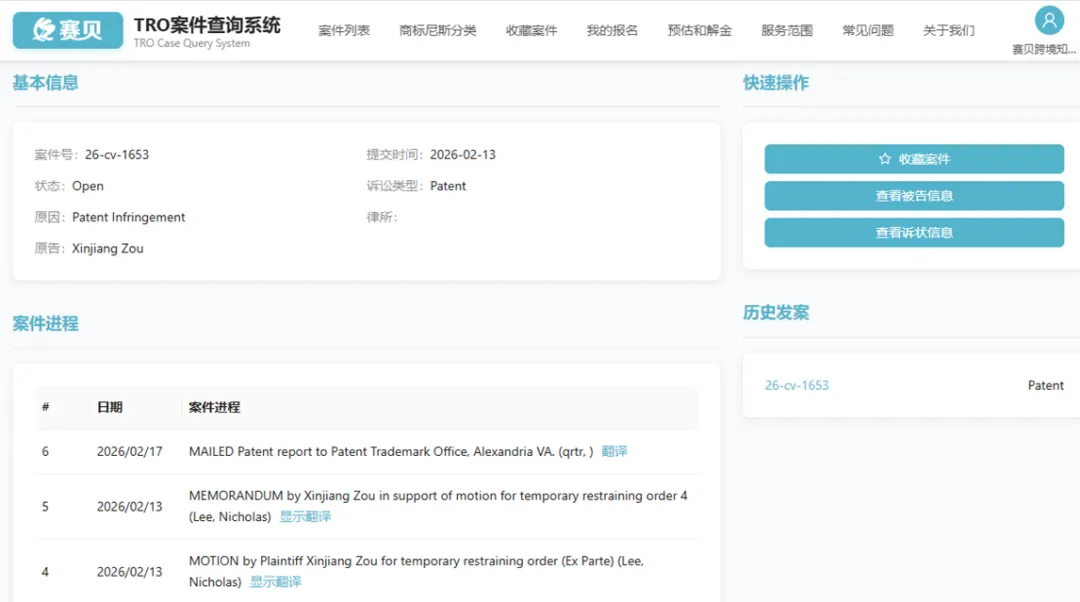 卖家可以在赛贝TRO案件查询系统免费下载诉状和跟进案件最新进度!(公众号菜单及赛贝知识产权官网均有入口)
