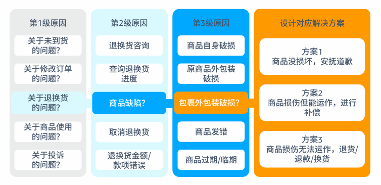 分类一般最多分成三层,可以从售前与售后两大类出发,售后可包含退货退款、发错货、物流配送问题、商品质量问题等。具体的分类,还是要按照您的业务特性来决定。