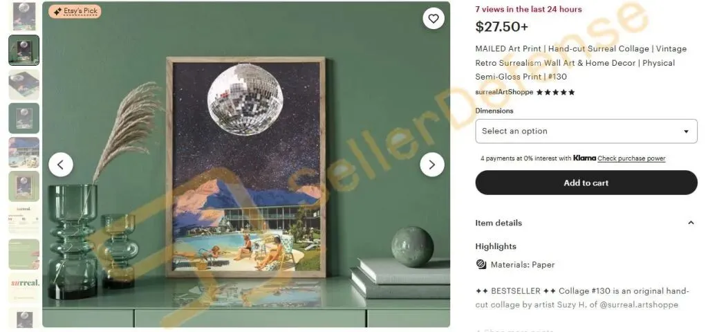 原告 Susan Catherine Holak 自幼便展现出艺术天赋,在发现拼贴画之前,她曾尝试过油画、烙画和书法等多种媒介。2019年,原告开始将拼贴画作为爱好,2020年,她创办了 Surreal Art Shoppe,并在Etsy上开始销售她的拼贴画作品。