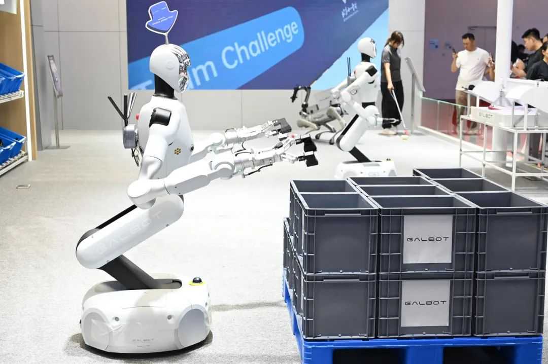 银河通用具身大模型机器人 Galbot 演示工业料箱搬运场景