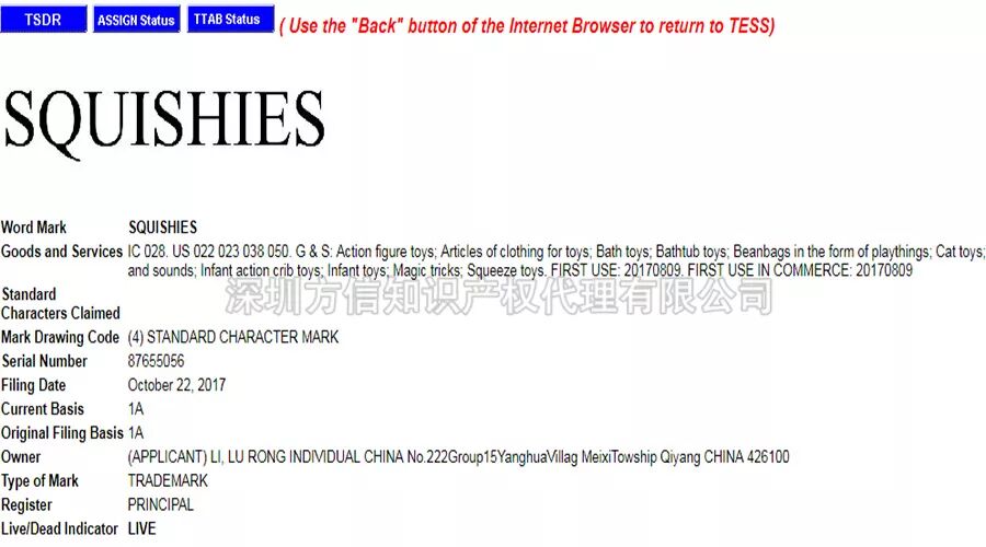 社会节奏太快,大家压力太大 减压玩具 一款接着一款现世 款款都是爆款 今天是它 Kawaii Squishy Toy 确实现在社会节奏越来越快, 不管是哪个年龄段的人们都有着各自的压力, 学习的压力?工作的压力? 一系列的减压玩具也应时而生了,而且每一款的销量都不差,甚至有指尖陀螺这般风靡全球的超级爆款! 传言,Kawaii Squishy Toy 这个玩具将会是继指尖陀螺之后的爆款减压玩具。 对于爆款,我们广大跨境卖家们想卖,但免不了担心侵权投诉问题。小编的使命就是---查证风险,避开雷区! 在开始侵权分析之前,小编有个问题: ???这个玩具的中文名称是什么??? (一脸懵逼问号脸) 慢回弹挤压发泄假食物玩具?? 第一次证明了度娘不是无敌的, 无敌的卖家们可以关注公众号后留言分享你想到的名字, 有奖励哦! 奖励一份精美实用的跨境电商小台历! 精美小巧, 放在桌上刚刚好, 而且十分实用, 我们把美国的重要节日都标记出来了,附带每个月热销品类与2018年美国节日营销盘点! 留言后, 小编会联系你领取的哦! 祝大家2018跨境大卖! 言归正传,Kawaii Squishy这个玩具起源于日本。因为这个玩具的造型多为食物,水果和卡通动物,本身是软绵绵的,拿在手里挤压,因而称 Kawaii Squishy(Kawaii:可爱; Squishy:粘软的),同时,Kawaii Squishy自带香味---草莓状的是草莓味,柠檬状的是柠檬味,香味在一定程度上也能达到舒缓压力,让人放松的作用。 在英语国家,这个玩具的代名词是 "Squishy Toy" 、 "Cute Squishies" 、 "Silly Squishies"、"Slow Rising" 描述玩具的性能。 (From amazon.com) 根据小编的了解,目前销售Squishies的两大大平台是http://buysquishies.com/ 和 https://www.sillysquishies.com/ 。这一个玩具,外观造型很多,自主设计的食物形状不存在外观专利侵权的风险,但是如果想要卡通形象,需要注意版权问题。例如,未经授权使用米奇老鼠的形象,这分分钟可能会惹来官司。 商标侵权,虽说很容易避免,但也很容易中招。作为未来的爆款,小编对其关键词 "Squishy" 在美国、欧盟、日本进行了检索。 (1)美国 28类玩具类相关的有四个商标,分别是 "squishy" "SQUISHIEZ 图形" "SQUISHIES" 和 "wishy Squishy",见下图: (SQUISHY 2006年获准注册) (Squishiez 2016年提交申请 待审中) (Wishy Squishy 2017年9月提交申请 待审中) (SQUISHIES 2017年10月提交申请 待审中) (2)欧盟 28类玩具类的 "squishy sand" 商标申请被驳回,原因是“商标名缺乏显著性”(descriptive and lack of distinctive character)。目前已注册的是 “squishy baff” , “squishy circuits” 处于公告状态,“squishydol” 审查中。 (squishy sand 驳回申请) (squishy baff 2012年注册) (squishy circuits 公告状态) (squishydol 审查中) (3)日本 28类玩具类的日文商标 “スクイーズ” (发音和英语“squishy”相同)已注册 (スクイーズ 2009年注册) 结论: (1)什么形状的Squishy不能卖? 答:知名的卡通形象和有版权的造型都会造成侵权,不能销售! 自主设计造型即可销售,这款玩具自主设计造型并不困难,且还可以在此基础上增添新意,小编强烈建议自主设计一款独特的Squishy Toy! (2)使用 “squishy/squishies” 会不会商标侵权? 答:“squishy”在美国已经注册了商标,欧盟和日本虽然没有注册商标, 但也有许多相似商标,所以需要谨慎使用,特别是作为商标名使用,较容易遭到投诉。