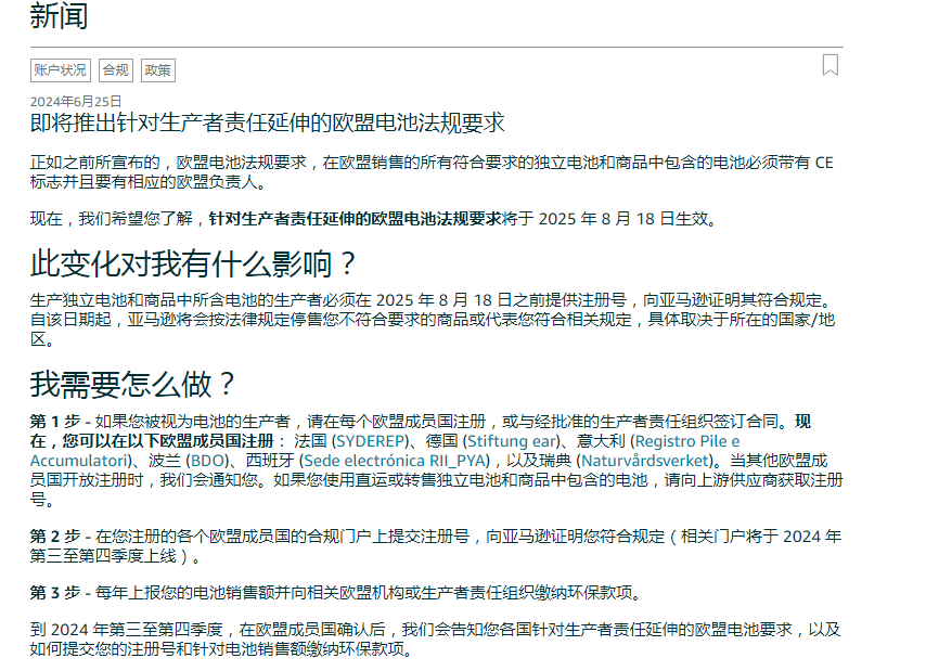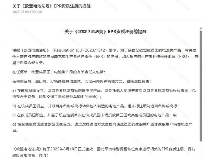 停售倒计时:8月18日前未完成电池法合规,商品禁止入欧!
